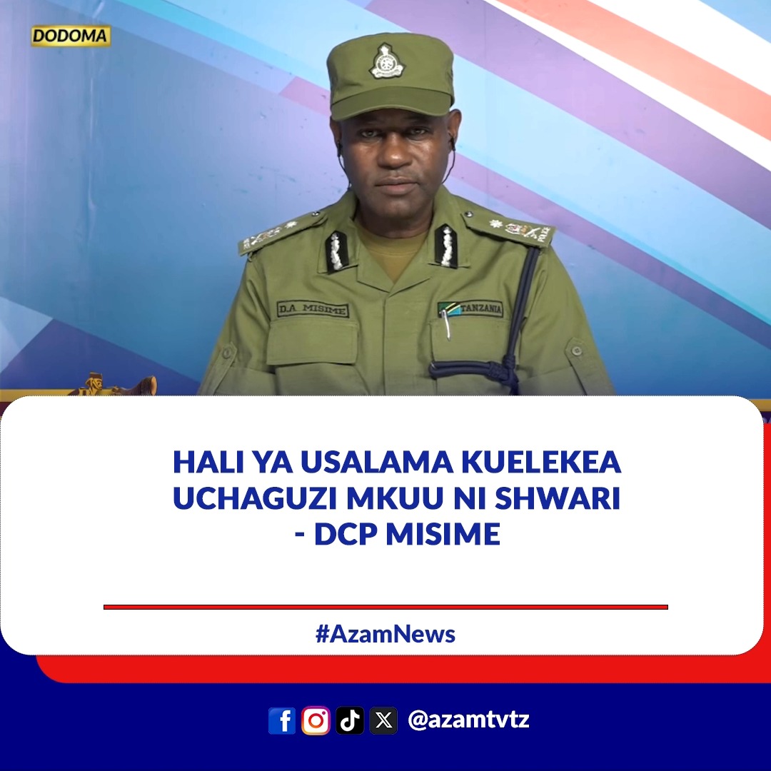 Msemaji wa Jeshi la Polisi Tanzania, DCP David Misime amesema hali ya ulinzi na usalama nchini kuelekea uchaguzi mkuu utakaofanyika Oktoba 29, 2025 imeendelea kuwa shwari, huku likiendelea kushirikiana na wananchi na wadau mbalimbali wa usalama kuhakikisha uchaguzi unafanyika kwa amani na utulivu.