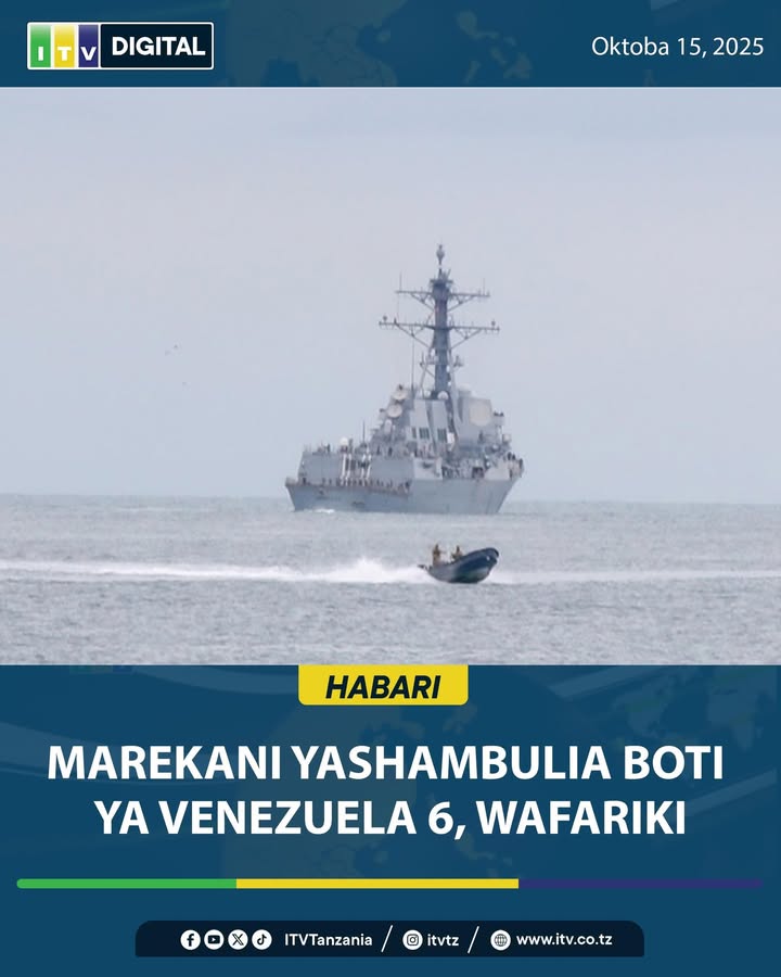 #HABARI: Rais Donald Trump amesema, Marekani imeishambulia boti nyingine kwenye pwani ya Venezuela na kuua watu sita, katika chapisho kwenye mitandao ya kijamii, Trump amesema boti hiyo ni ya magaidi na ilikuwa ikisafirisha mihadarati.