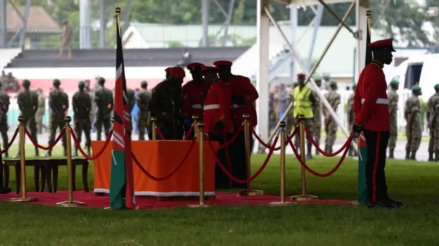 hadhi ya Meja kuandaa jeneza hilo kwa usaidizi wa maafisa wengine wa kijeshi.