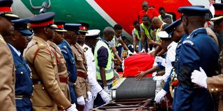 Mwili wake ulisafirishwa kwa gari maalumu la kijeshi la kubeba silaha, likiendeshwa na maofisa wa Jeshi la Ulinzi la Kenya (KDF). Pia, mwili wake kupelekwa katika majengo ya Bunge ambapo wabunge walipata fursa ya kutoa heshima zao za mwisho.