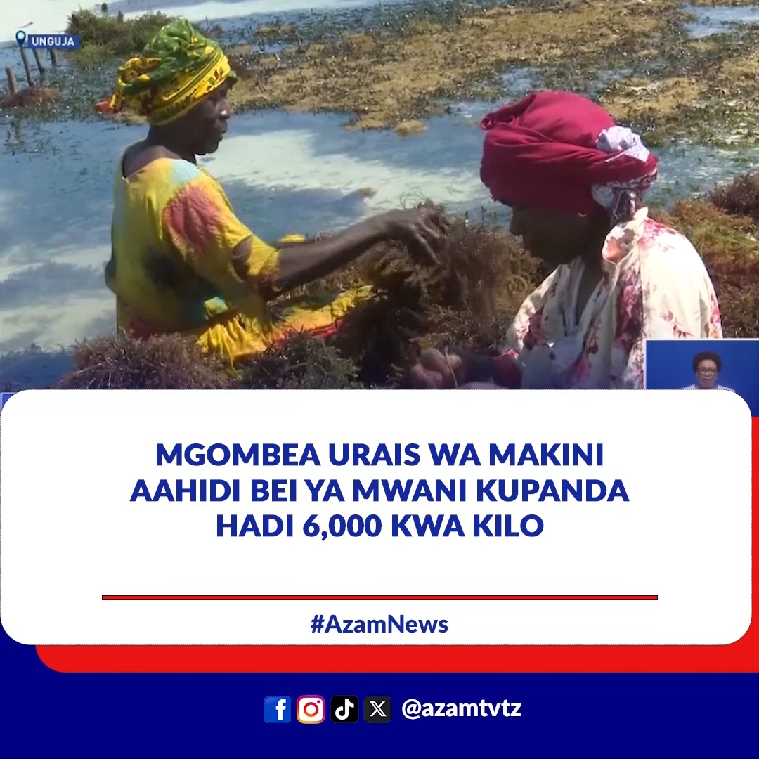 Wakulima wa mwani visiwani Zanzibar wameahidiwa kupata soko la uhakika na thamani ya zao hilo itakayofikia Shilingi 6,000 kwa kilo iwapo Chama Cha MAKINI kitafanikiwa kushinda Uchaguzi Mkuu.