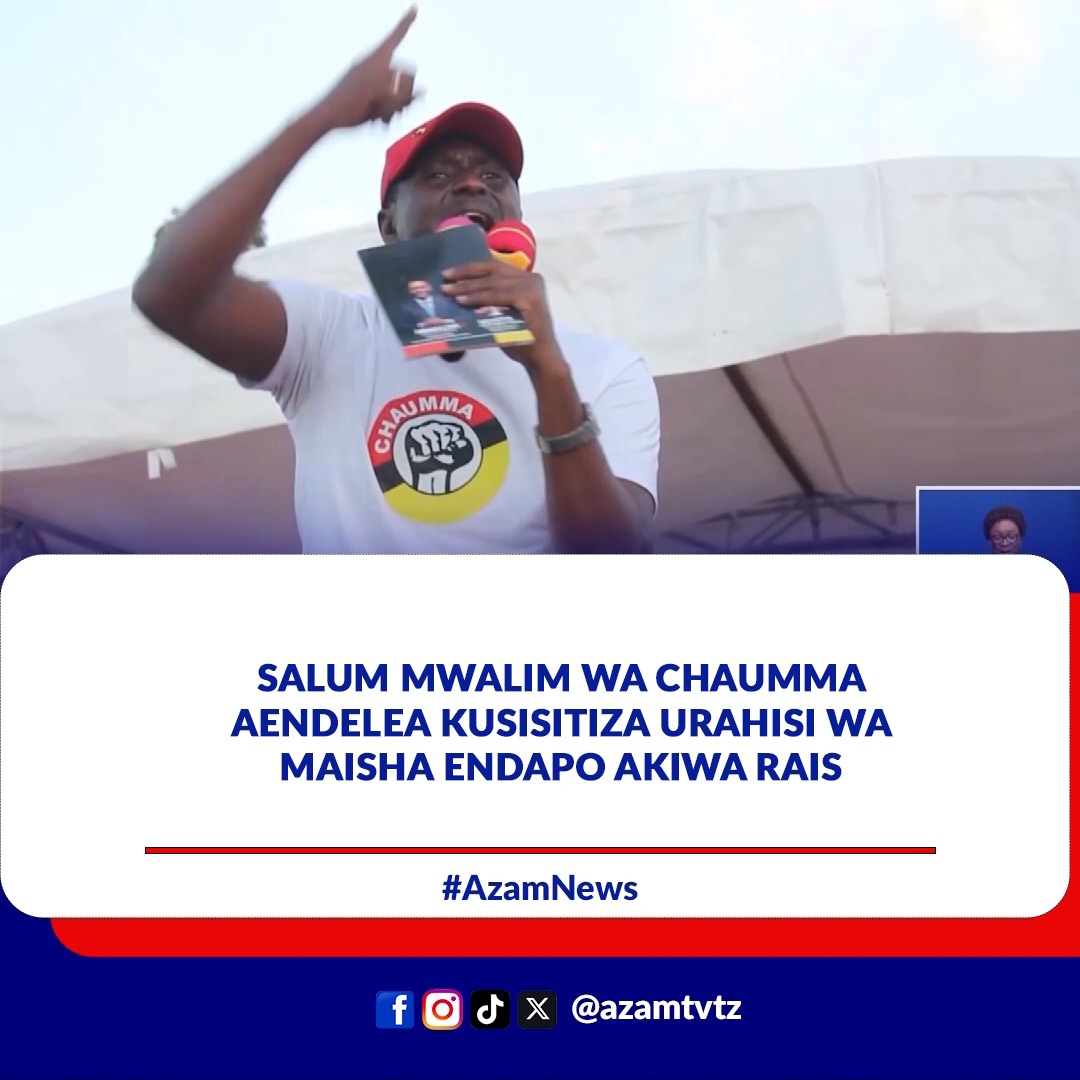 Chama cha Ukombozi wa Umma (CHAUMMA), kupitia mgombea wake wa urais Salum Mwalim ameendelea kusisitiza azma yake ya kupunguza ugumu wa gharama za maisha kwa wananchi, endapo watamchagua katika uchaguzi mkuu ujao wa Oktoba 29, 2025.