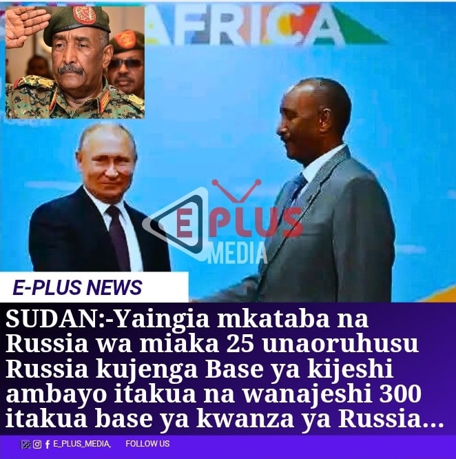 SUDAN IMEINGIA MKATABA NA RUSSIA WA MIAKA 25 UNAO RUHUSU RUSSIA KUJENGA BASE YA KIJESHI AMBAYO ITAKUWA NA WANAJESHI 300.