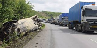 Sehemu ya mabaki ya Lori la mizigo lililokuwa limebeba shehena ya mbolea kutoka Dar es salaam kuelekea Mbeya baada ya kugongana uso kwa uso na basi la abiria Januari Mosi 2025 lililokuwa likitokea Msamvu kuelekea Mombo Mkoani Tanga. Picha na Jackson John.