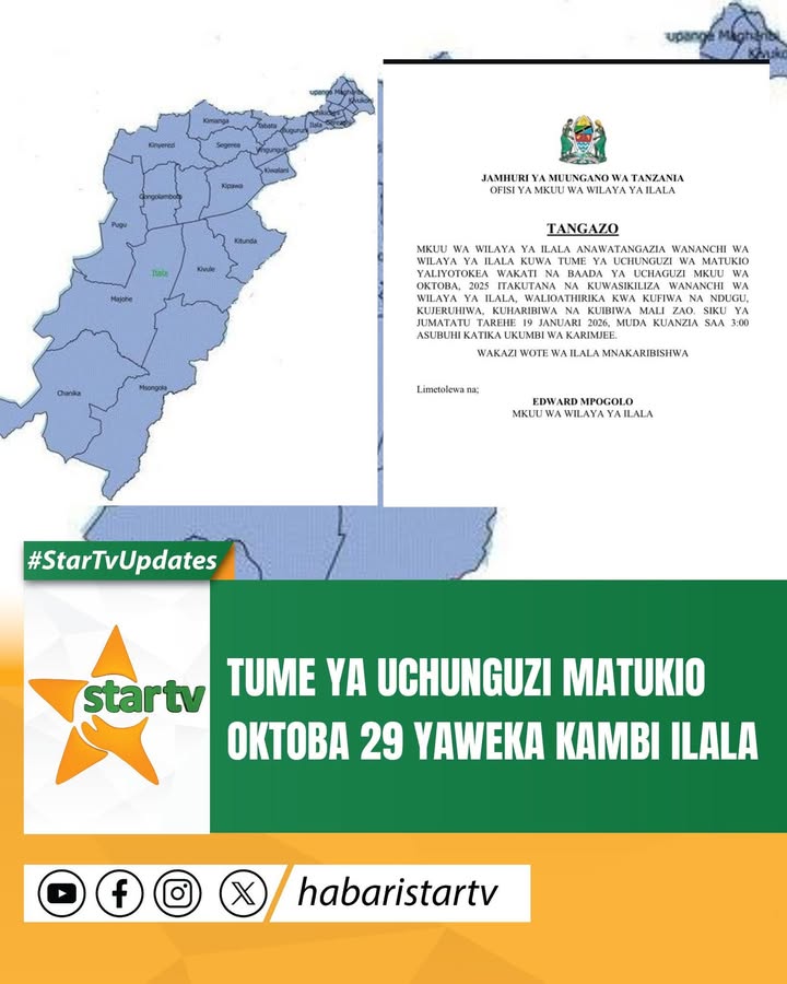 Taarifa ya Mkuu wa Wilaya ya Ilala, Edward Mpogolo imesema kuwa Tume hiyo inatarajiwa kuwa wilayani humo Jumatatu, Januari 19,2026.