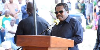 Makamu wa Raisi wa Jamhuri ya Muungano wa Tanzania, Emmanuel Nchimbi akizungumza na waombolezaji msibani nyumbani kwa Munde Tambwe