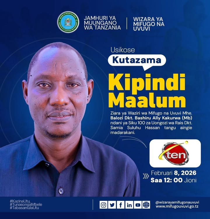 Usikose kuangalia kipindi maalumu kitakacho angazia Ziara ya Waziri wa Mifugo na uvuvi Mhe. Balozi Bashiru Ally Kakurwa ndani ya siku 100 za Uongozi wa Rais Dkt. Samia Suluhu Hassan tangu aingie madarakani.