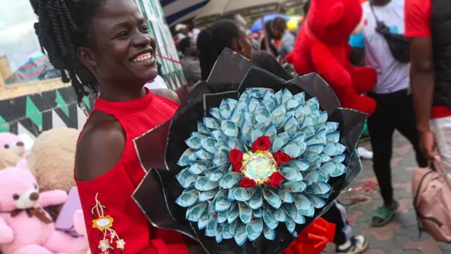Pesa taslimu zinazotumika katika mashada kama hayo hutofautiana sana – kwa jumla, zinaweza kuwa shilingi 1,000 ($8; £6) au hadi shilingi milioni moja, anasema Angela Muthoni, mfanyabiashara wa maua katika duka la Gift and Flowers katikati mwa Nairobi.