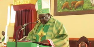 Askofu wa jimbo Katoliki la Geita Flavian Kasala, akizungumza katika misa iliyoambatana na kufungwa kwa huduma ya matibabu bure katika Kanisa kuu Jimbo katoliki la Geita.