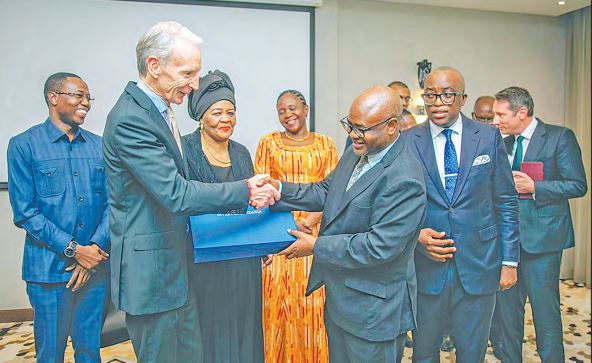 DAR ES SALAAM: THE Minister of State in the President’s Office for Planning and Investment, Prof Kitila Mkumbo presents a gift to the Chief Executive Officer of the World Gold Council (WGC), David Tait in Dar es Salaam yesterday.