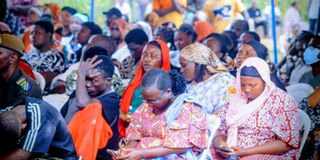 Baadhi ya waombolezaji wakiwa nyumbani kwa marehemu, Tumsifu Kileo kabla mwili wake haujasafirishwa kuelekea mkoani Kilimanjaro kwaajili ya mazishi. Picha na Saada Amir