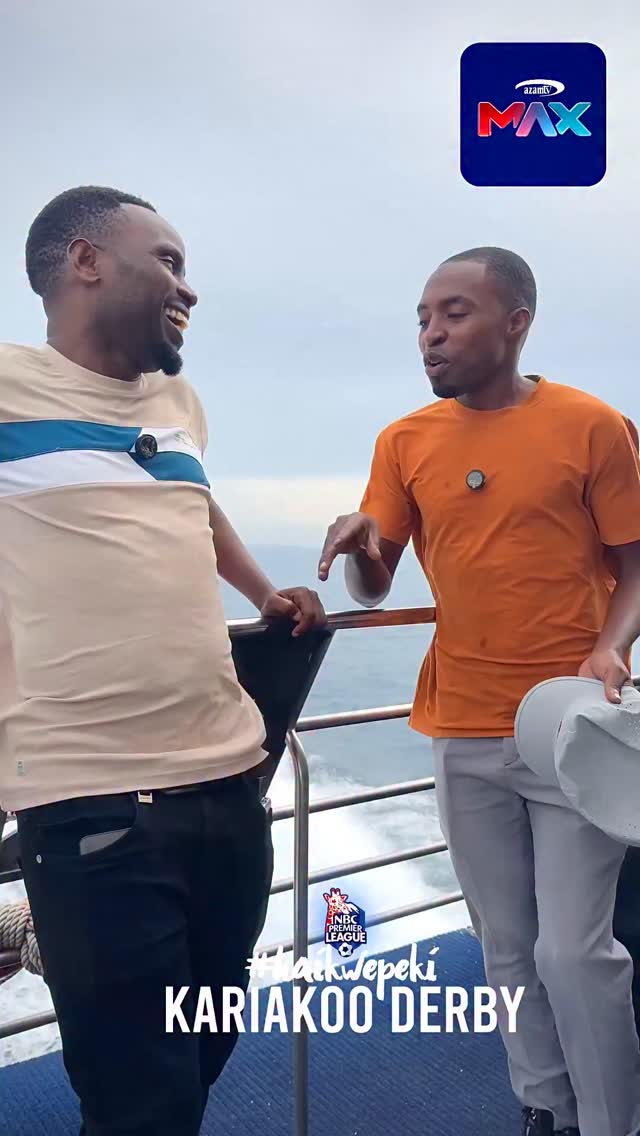 #KariakooDerby: Mtangazaji wa soka @ngodaalwatan amzuia Sauti ya Radi @baraka_mpenja ambaye alitaka kujitosa katikati ya Bahari ya Hindi akitaka kuonesha umwamba wake wa kuogelea.